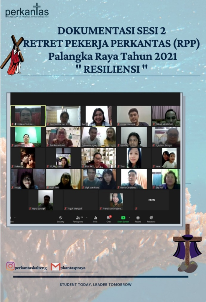 Retret Pekerja Perkantas (RPP) kembali diadakan di tahun ini, tepatnya di tanggal 18-20 Juli 2021. Meski kegiatan retret pekerja perkantas masih diadakan secara virtual, tidaklah menyurutkan semangat para pekerja perkantas dari komponen siswa, mahasiswa, alumni serta tim perintisan Puruk Cahu dan Kuala Kurun, dan tentunya dari kakak-kakak anggota BPP Kalteng untuk berpartisipasi dalam kegiatan ini. Retret pekerja perkantas tahun 2021 mengusung tema besar resiliensi, dengan harapan para pekerja perkantas dapat tetap bertahan untuk setia melayani di masa-masa pandemi. Tercatat ada 4 sesi yang dibukakan di RPP tahun ini seperti ini. dengan sdr Ivan dan Kak Yudit yang menjadi pembicara di RPP tahun ini. RPP ditutup dengan saling mendoakan satu sama lain di sesi terakhir.